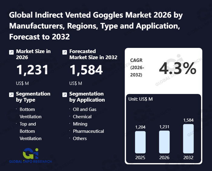 Global Info Research has recently published "Global Indirect Vented Goggles Market 2026 by Manufacturers, Regions, Type and Application, Forecast to 2032". This report systematically analyzes the global Indirect Vented Goggles market, providing multi-dimensional insights through type (Bottom Ventilation、 Top and Bottom Ventilation), application (Oil and Gas、 Chemical、 Mining、 Pharmaceutical、 Others), regional markets, and major manufacturers (3M、 Honeywell、 Dräger、 Kimberly-Clark、 MSA、 Radians、 JSP Safety、 Bolle Safety、 Gateway Safety、 Dewalt、 Delta Plus、 Protective Industrial Products、 Carhartt、 Pyramex、 Doris、 Haber、 KleenGuard、 Eyres Safety), assessing the market status, trend evolution, and competitive landscape impact from 2021 to 2032.