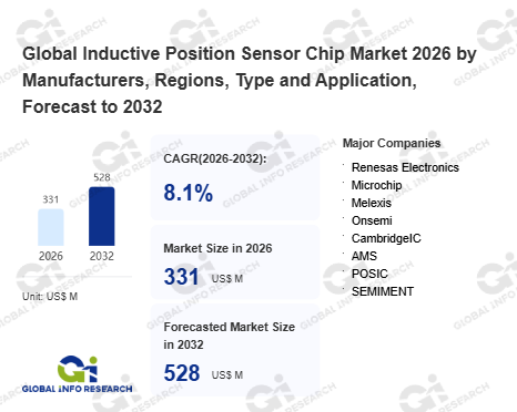Global Info Research has recently published "Global Inductive Position Sensor Chip Market 2026 by Manufacturers, Regions, Type and Application, Forecast to 2032". This report systematically analyzes the global Inductive Position Sensor Chip market, providing multi-dimensional insights through type (Inductive Encoder IC、 Inductive Resolver IC、 Other), application (Automotive、 Medical、 Industrial Automation、 Aerospace、 Other), regional markets, and major manufacturers (Renesas Electronics、 Microchip、 Melexis、 Onsemi、 CambridgeIC、 AMS、 POSIC、 SEMIMENT), assessing the market status, trend evolution, and competitive landscape impact from 2021 to 2032.