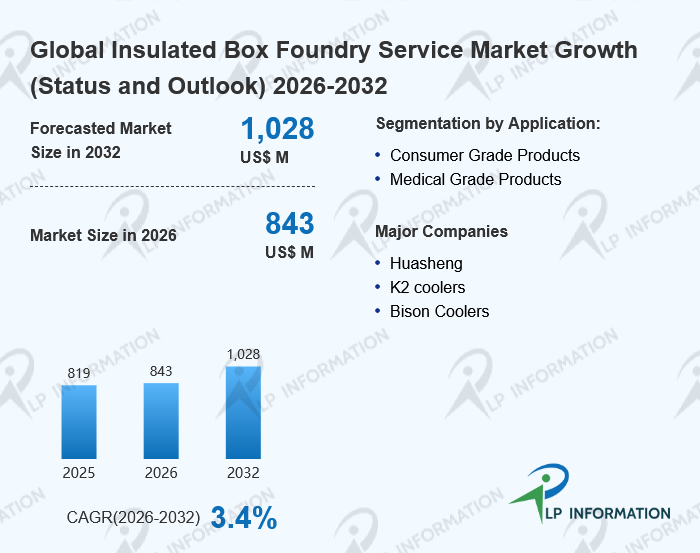 The global Insulated Box Foundry Service market size is predicted to grow from US$ 819 million in 2025 to US$ 1028 million in 2032; it is expected to grow at a CAGR of 3.4% from 2026 to 2032.