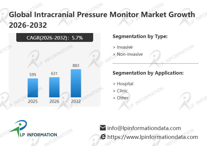 The global Intracranial Pressure Monitor market size is predicted to grow from US$ 595 million in 2025 to US$ 883 million in 2032; it is expected to grow at a CAGR of 5.7% from 2026 to 2032.
