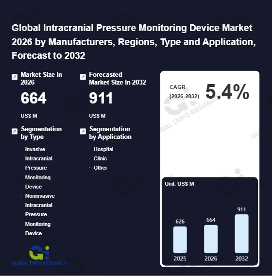 Global Info Research has recently published "Global Intracranial Pressure Monitoring Device Market 2026 by Manufacturers, Regions, Type and Application, Forecast to 2032". This report systematically analyzes the current status, future trends (2021-2032), and competitive landscape of the global Intracranial Pressure Monitoring Device market. It provides a quantitative analysis from the perspectives of type (Invasive Intracranial Pressure Monitoring Device、 Noninvasive Intracranial Pressure Monitoring Device), application (Hospital、 Clinic、 Other), regional markets, and major manufacturers (Integra LifeSciences、 Medtronic、 Johnson & Johnson、 Sophysa、 Raumedic、 Spiegelberg、 HaiWeiKang、 HeadSense Medical、 Vittamed、 Comen、 PrimaNova、 TALEND MEDICAL), comprehensively assessing market opportunities and competitive dynamics.