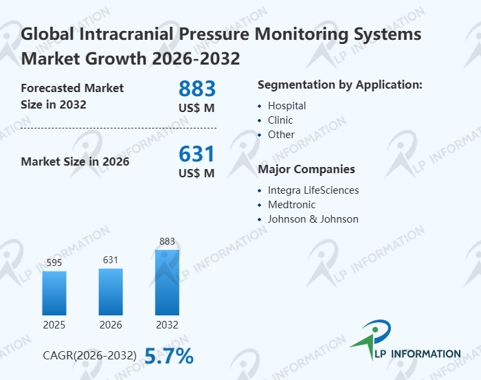 The global Intracranial Pressure Monitoring Systems market size is predicted to grow from US$ 595 million in 2025 to US$ 883 million in 2032; it is expected to grow at a CAGR of 5.7% from 2026 to 2032.