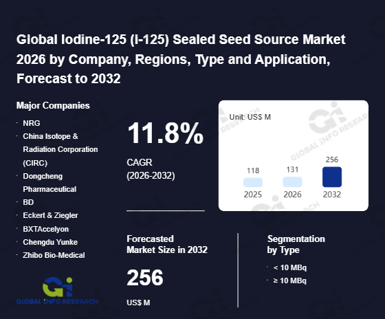 Global Info Research has recently published "Global Iodine-125 (I-125) Sealed Seed Source Market 2026 by Manufacturers, Regions, Type and Application, Forecast to 2032". This report systematically analyzes the current status, future trends (2021-2032), and competitive landscape of the global Iodine-125 (I-125) Sealed Seed Source market. It provides a quantitative analysis from the perspectives of type (< 10 MBq、 ≥ 10 MBq), application (Breast Tumor Localization、 Prostate Cancer Treatment), regional markets, and major manufacturers (NRG、 China Isotope & Radiation Corporation (CIRC)、 Dongcheng Pharmaceutical、 BD、 Eckert & Ziegler、 BXTAccelyon、 Chengdu Yunke、 Zhibo Bio-Medical、 Seeds Biological Pharmacy (Tianjin) Ltd.、 SHENZHEN LEW Bioengineering Technolohy), comprehensively assessing market opportunities and competitive dynamics.