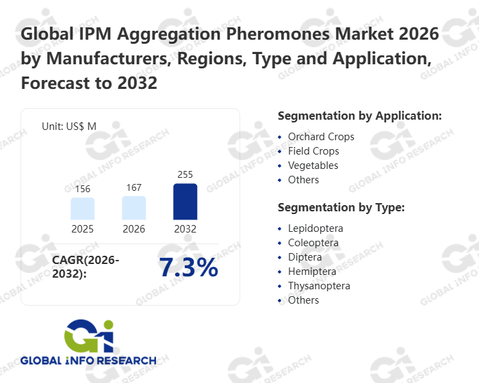 Global Info Research has recently published "Global IPM Aggregation Pheromones Market 2026 by Manufacturers, Regions, Type and Application, Forecast to 2032". This report systematically analyzes the global IPM Aggregation Pheromones market, providing multi-dimensional insights through type (Lepidoptera、 Coleoptera、 Diptera、 Hemiptera、 Thysanoptera、 Others), application (Orchard Crops、 Field Crops、 Vegetables、 Others), regional markets, and major manufacturers (Shin-Etsu、 BASF、 Suterra、 Biobest Group、 Provivi、 BedoukianBio、 Hercon Environmental、 Koppert Biological Systems、 Pherobio Technology、 Russell IPM、 SEDQ Healthy Crops、 Certis Belchim、 Agrobio、 ISCA、 Scentry Biologicals、 Bioglobal、 Trece、 Pherobank、 Novagrica), assessing the market status, trend evolution, and competitive landscape impact from 2021 to 2032.