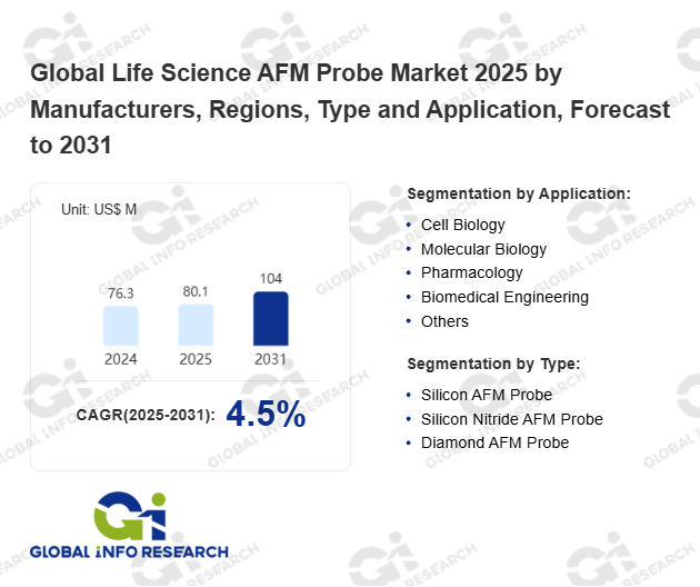 Global Info Research has recently published "Global Life Science AFM Probe Market 2026 by Manufacturers, Regions, Type and Application, Forecast to 2032". This report systematically analyzes the global Life Science AFM Probe market, providing multi-dimensional insights through type (Silicon AFM Probe、 Silicon Nitride AFM Probe、 Diamond AFM Probe), application (Cell Biology、 Molecular Biology、 Pharmacology、 Biomedical Engineering、 Others), regional markets, and major manufacturers (Nanosensors、 NanoWorld、 MikroMasch、 nanotools、 BudgetSensors、 Oxford Instruments、 AppNano、 Team Nanotec、 PARK Systems、 Bruker、 NT-MDT、 SQube、 CD Bioparticles、 Rocky Mountain Nanotechnology、 K-TEK Nanotechnology), assessing the market status, trend evolution, and competitive landscape impact from 2021 to 2032.