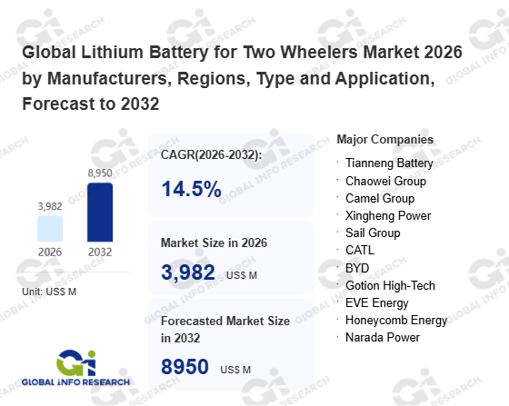 Global Info Research has recently published "Global Lithium Battery for Two Wheelers Market 2026 by Manufacturers, Regions, Type and Application, Forecast to 2032". This report systematically analyzes the global Lithium Battery for Two Wheelers market, providing multi-dimensional insights through type (Ternary Lithium Battery、 LiFePO4 Battery), application (E-Motor、 E-bike、 E-scooter), regional markets, and major manufacturers (Tianneng Battery、 Chaowei Group、 Camel Group、 Xingheng Power、 Sail Group、 CATL、 BYD、 Gotion High-Tech、 EVE Energy、 Honeycomb Energy、 Narada Power、 EVE Battery、 Exide Technologies、 GS Yuasa、 Hitachi Chemical), assessing the market status, trend evolution, and competitive landscape impact from 2021 to 2032.