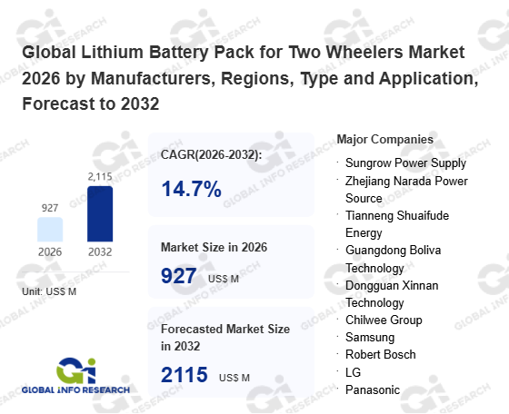 Global Info Research has recently published "Global Lithium Battery Pack for Two Wheelers Market 2026 by Manufacturers, Regions, Type and Application, Forecast to 2032". This report systematically analyzes the current status, future trends (2021-2032), and competitive landscape of the global Lithium Battery Pack for Two Wheelers market. It provides a quantitative analysis from the perspectives of type (4820 Pack、 4812 Pack、 6020 Pack、 Others), application (E-Motor、 E-bike、 E-scooter), regional markets, and major manufacturers (Sungrow Power Supply、 Zhejiang Narada Power Source、 Tianneng Shuaifude Energy、 Guangdong Boliva Technology、 Dongguan Xinnan Technology、 Chilwee Group、 Samsung、 Robert Bosch、 LG、 Panasonic), comprehensively assessing market opportunities and competitive dynamics.