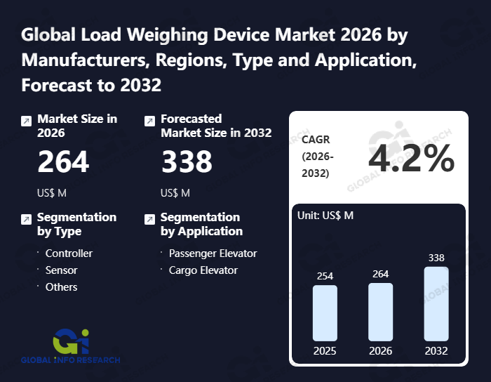 Global Info Research has recently published "Global Load Weighing Device Market 2026 by Manufacturers, Regions, Type and Application, Forecast to 2032". This report systematically analyzes the global Load Weighing Device market, providing multi-dimensional insights through type (Controller、 Sensor、 Others), application (Passenger Elevator、 Cargo Elevator), regional markets, and major manufacturers (Vtlift、 EMCO、 Micelect、 Elevator Equipment、 K-Tech International、 ISF Elevator、 Dinacell Electrónica、 Wittur、 Elevator Systems,、 Aien、 PROSPECT Photoelectric Tech、 Alben、 Jiukang Electric), assessing the market status, trend evolution, and competitive landscape impact from 2021 to 2032.
