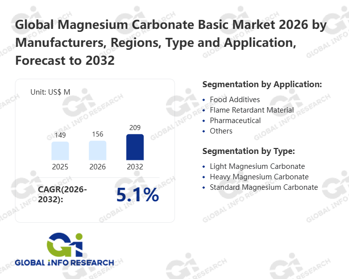 Global Info Research has recently published "Global Magnesium Carbonate Basic Market 2026 by Manufacturers, Regions, Type and Application, Forecast to 2032". This report systematically analyzes the global Magnesium Carbonate Basic market, providing multi-dimensional insights through type (Light Magnesium Carbonate、 Heavy Magnesium Carbonate、 Standard Magnesium Carbonate), application (Food Additives、 Flame Retardant Material、 Pharmaceutical、 Others), regional markets, and major manufacturers (Spectrum Chemical、 Honeywell International Inc、 Merck KGaA、 Alpha Chemika、 Inoxia Ltd、 Swiss Formulations、 Glentham Life Sciences、 Vizag Chemical、 Loba Chemie), assessing the market status, trend evolution, and competitive landscape impact from 2021 to 2032.