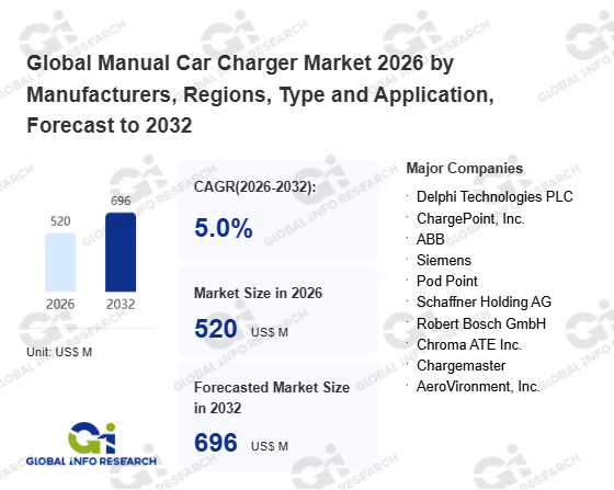 Global Info Research has recently published "Global Manual Car Charger Market 2026 by Manufacturers, Regions, Type and Application, Forecast to 2032". This report systematically analyzes the global Manual Car Charger market, providing multi-dimensional insights through type (On-Board Chargers、 Off-Board Chargers), application (Passenger Car、 Commercial Vehicles), regional markets, and major manufacturers (Delphi Technologies PLC、 ChargePoint, Inc.、 ABB、 Siemens、 Pod Point、 Schaffner Holding AG、 Robert Bosch GmbH、 Chroma ATE Inc.、 Chargemaster、 AeroVironment, Inc.), assessing the market status, trend evolution, and competitive landscape impact from 2021 to 2032.