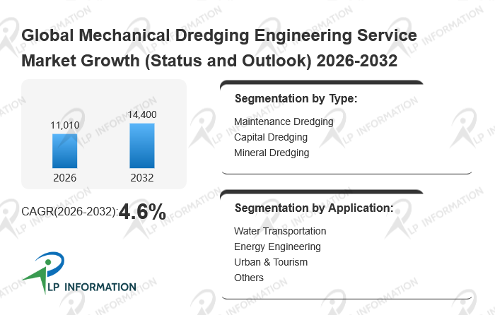 The global Mechanical Dredging Engineering Service market size is predicted to grow from US$ 10590 million in 2025 to US$ 14400 million in 2032; it is expected to grow at a CAGR of 4.6% from 2026 to 2032.