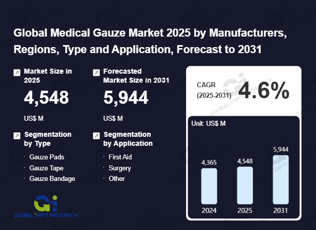 Global Info Research has recently published "Global Medical Gauze Market 2026 by Manufacturers, Regions, Type and Application, Forecast to 2032". This report systematically analyzes the current status, future trends (2021-2032), and competitive landscape of the global Medical Gauze market. It provides a quantitative analysis from the perspectives of type (Gauze Pads、 Gauze Tape、 Gauze Bandage), application (First Aid、 Surgery、 Other), regional markets, and major manufacturers (Johnson & Johnson、 3M、 Medtronic、 Dynarex、 Smith & Nephew、 BDF、 Hartmann、 Kawamoto、 Medline、 Derma Sciences、 Jiangsu ZhiXin Medical Supplies Co., Ltd.、 Suzhou Hengxiang Medical Dressing Co.,Ltd、 Jiangsu ZhiXin Medical Supplies Co., Ltd.、 BATIST Medical、 Fleming Medical、 Kingphar), comprehensively assessing market opportunities and competitive dynamics.