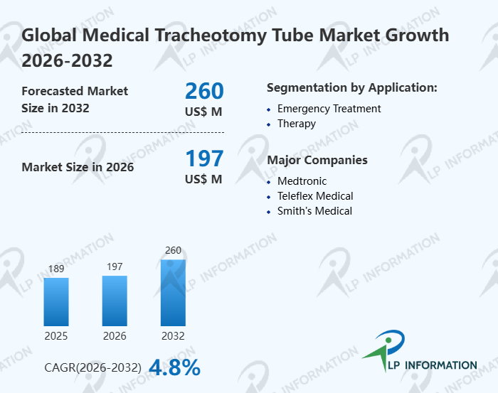 The global Medical Tracheotomy Tube market size is predicted to grow from US$ 189 million in 2025 to US$ 260 million in 2032; it is expected to grow at a CAGR of 4.8% from 2026 to 2032.