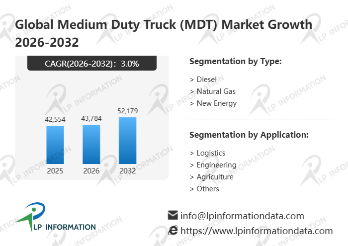 LP Information's latest "Global Medium Duty Truck (MDT) Market Growth 2026-2032" aims to provide a comprehensive assessment of the industry's current status, competitive landscape, future trends, and opportunities. Medium Duty Truck (MDT) report presents readers with a comprehensive, systematic, and forward-looking global keyword market analysis blueprint through a three-dimensional analytical framework: "Data Quantification (Size, Growth Rate, Market Share) + Structural Analysis (Products, Applications, Regions, Competition) + In-Depth Insights (Costs, Channels, Trends)."