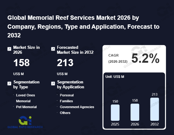 Global Info Research has recently published "Global Memorial Reef Services Market 2026 by Manufacturers, Regions, Type and Application, Forecast to 2032". This report systematically analyzes the current status, future trends (2021-2032), and competitive landscape of the global Memorial Reef Services market. It provides a quantitative analysis from the perspectives of type (Loved Ones Memorial、 Pet Memorial), application (Personal、 Families、 Government Agencies、 Others), regional markets, and major manufacturers (Destination Destiny、 Ashes on the Sea、 Reef In Peace、 Burials in the Sea、 Eternal Reefs、 Neptune Memorial Reef、 Resting Reef、 Memorial Reefs International、 Guardian Memorial Reefs、 Solace Reef), comprehensively assessing market opportunities and competitive dynamics.