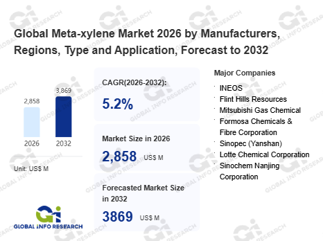 Global Info Research has recently published "Global Meta-xylene Market 2026 by Manufacturers, Regions, Type and Application, Forecast to 2032". This report systematically analyzes the global Meta-xylene market, providing multi-dimensional insights through type (Purity≥99.5%、 Purity≥98%), application (IPA Production、 Solvents、 Others), regional markets, and major manufacturers (INEOS、 Flint Hills Resources、 Mitsubishi Gas Chemical、 Formosa Chemicals & Fibre Corporation、 Sinopec (Yanshan)、 Lotte Chemical Corporation、 Sinochem Nanjing Corporation), assessing the market status, trend evolution, and competitive landscape impact from 2021 to 2032.