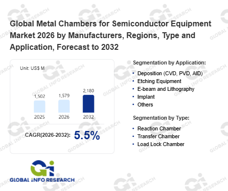 Global Info Research has recently published "Global Metal Chambers for Semiconductor Equipment Market 2026 by Manufacturers, Regions, Type and Application, Forecast to 2032". This report systematically analyzes the global Metal Chambers for Semiconductor Equipment market, providing multi-dimensional insights through type (Reaction Chamber、 Transfer Chamber、 Load Lock Chamber), application (Deposition (CVD, PVD, AlD)、 Etching Equipment、 E-beam and Lithography、 Implant、 Others), regional markets, and major manufacturers (Fiti Group、 N2TECH CO., LTD、 Calitech、 VACGEN、 Marumae Co., Ltd、 Duratek Technology Co., Ltd.、 Sprint Precision Technologies Co., Ltd、 Shenyang Fortune Precision Equipment Co., Ltd、 Tolerance、 Sanyue Semiconductor Technology、 BoBoo), assessing the market status, trend evolution, and competitive landscape impact from 2021 to 2032.