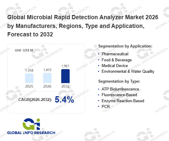 Global Info Research has recently published "Global Microbial Rapid Detection Analyzer Market 2026 by Manufacturers, Regions, Type and Application, Forecast to 2032". This report systematically analyzes the global Microbial Rapid Detection Analyzer market, providing multi-dimensional insights through type (ATP Bioluminescence、 Fluorescence-Based、 Enzyme Reaction-Based、 PCR), application (Pharmaceutical、 Food & Beverage、 Medical Device、 Environmental & Water Quality), regional markets, and major manufacturers (Sartorius、 Merck、 Thermo Fisher Scientific、 BD、 Danaher、 Abbott Laboratories、 Charles River Laboratories、 QIAGEN、 Agilent Technologies、 Neogen Corporation、 PerkinElmer、 Rapid Micro Biosystems、 Hygiena LLC、 Horiba、 Bruker、 Tailin、 bioMérieux), assessing the market status, trend evolution, and competitive landscape impact from 2021 to 2032.