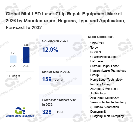 Global Info Research has recently published "Global Mini LED Laser Chip Repair Equipment Market 2026 by Manufacturers, Regions, Type and Application, Forecast to 2032". This report systematically analyzes the global Mini LED Laser Chip Repair Equipment market, providing multi-dimensional insights through type (Fully Automatic、 Semi-automatic), application (Direct Display Module、 Backlight Module、 Common to Both), regional markets, and major manufacturers (Shin-Etsu、 Toray、 KOSES、 Charm Engineering、 DR Laser、 Suzhou Delphi Laser、 Hymson Laser Technology Group、 Han's Laser Technology Industry Group、 Suzhou Cowin Laser Technology、 ShenZhen MicroASM Semicontuctor Technology (ETmade Automation Equipment)、 Huagong Tech Company), assessing the market status, trend evolution, and competitive landscape impact from 2021 to 2032.