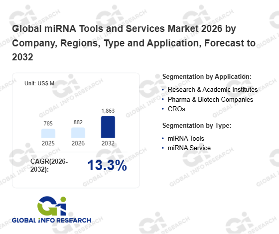 Global Info Research has recently published "Global miRNA Tools and Services Market 2026 by Manufacturers, Regions, Type and Application, Forecast to 2032". This report systematically analyzes the current status, future trends (2021-2032), and competitive landscape of the global miRNA Tools and Services market. It provides a quantitative analysis from the perspectives of type (miRNA Tools、 miRNA Service), application (Research & Academic Institutes、 Pharma & Biotech Companies、 CROs), regional markets, and major manufacturers (Qiagen、 Thermo Fisher Scientific、 Agilent、 Merck KGaA、 Bio-Rad、 Horizon Discovery、 Illumina、 BioVendor、 Takara Bio、 Promega、 FUJIFILM、 GenoSensor、 Canopy Biosciences、 Phalanx Biotech、 NanoString Technologies、 Zymo Research、 Biocat、 Genecopoeia), comprehensively assessing market opportunities and competitive dynamics.