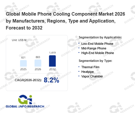 Global Info Research has recently published "Global Mobile Phone Cooling Component Market 2026 by Manufacturers, Regions, Type and Application, Forecast to 2032". This report systematically analyzes the global Mobile Phone Cooling Component market, providing multi-dimensional insights through type (Thermal Film、 Heatpipe、 Vapor Chamber), application (Low-End Mobile Phone、 Mid-Range Phone、 High-End Mobile Phone), regional markets, and major manufacturers (Auras、 CCI、 Jentech、 Taisol、 Fujikura、 Forcecon Tech、 Delta Electronics、 Jones Tech、 Celsia、 Tanyuan Technology、 Aavid、 Furukawa、 Cooler Master), assessing the market status, trend evolution, and competitive landscape impact from 2021 to 2032.