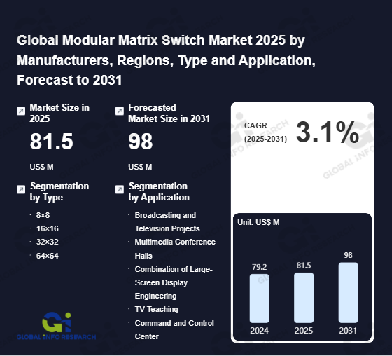 Global Info Research has recently published "Global Modular Matrix Switch Market 2026 by Manufacturers, Regions, Type and Application, Forecast to 2032". This report systematically analyzes the global Modular Matrix Switch market, providing multi-dimensional insights through type (8×8、 16×16、 32×32、 64×64), application (Broadcasting and Television Projects、 Multimedia Conference Halls、 Combination of Large-Screen Display Engineering、 TV Teaching、 Command and Control Center), regional markets, and major manufacturers (Crestron、 Kramer Electronics、 Barco、 Hitachi、 Aten、 Sony、 Harman International Industries(Samsung Electronics)、 Extron、 Atlona、 AVProEdge、 BZBGEAR、 WyreStorm、 Key Digital), assessing the market status, trend evolution, and competitive landscape impact from 2021 to 2032.