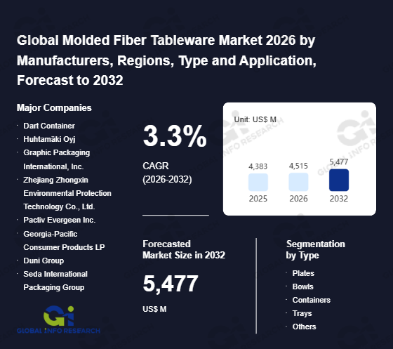 Global Info Research has recently published "Global Molded Fiber Tableware Market 2026 by Manufacturers, Regions, Type and Application, Forecast to 2032". This report systematically analyzes the current status, future trends (2021-2032), and competitive landscape of the global Molded Fiber Tableware market. It provides a quantitative analysis from the perspectives of type (Plates、 Bowls、 Containers、 Trays、 Others), application (Home Use、 Commercial Use), regional markets, and major manufacturers (Dart Container、 Huhtamäki Oyj、 Graphic Packaging International, Inc.、 Zhejiang Zhongxin Environmental Protection Technology Co., Ltd.、 Pactiv Evergeen Inc.、 Georgia-Pacific Consumer Products LP、 Duni Group、 Seda International Packaging Group、 Guangdong Shaoneng Group Co., Ltd.、 Zhejiang Kingsun Eco-Pack Co., Ltd.、 Hosti GmbH、 Vegware、 PrimeWare), comprehensively assessing market opportunities and competitive dynamics.