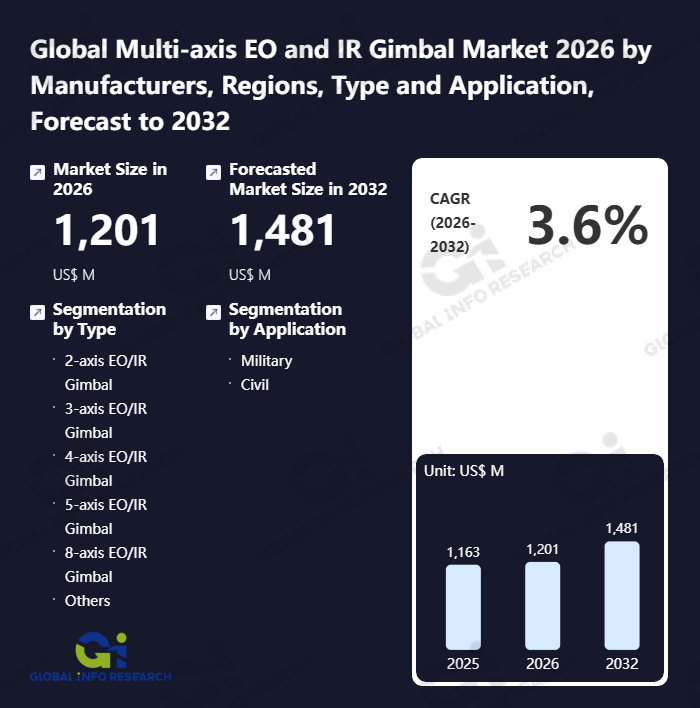 This guide aims to help you systematically interpret "Global Multi-axis EO and IR Gimbal Market 2026 by Manufacturers, Regions, Type and Application, Forecast to 2032". The report comprehensively analyzes global Multi-axis EO and IR Gimbal market trends, competitive landscape, and growth opportunities from 2021 to 2032, covering multi-dimensional data including type, application, and regional markets. Whether you are a market strategist, product manager, investment analyst, or industry researcher, this guide will help you quickly locate key information and transform Multi-axis EO and IR Gimbal report data into actionable business insights.