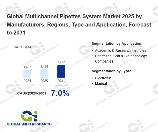 Global Info Research has recently published "Global Multichannel Pipettes System Market 2026 by Manufacturers, Regions, Type and Application, Forecast to 2032". This report systematically analyzes the global Multichannel Pipettes System market, providing multi-dimensional insights through type (Electronic、 Manual), application (Academic & Research Institutes、 Pharmaceutical & Biotechnology Companies), regional markets, and major manufacturers (Thermo Fisher Scientific、 Eppendorf、 Mettler-Toledo、 Tecan、 Sartorius、 PerkinElmer、 Corning、 Danaher、 Gilson、 Agilent、 Integra Holding), assessing the market status, trend evolution, and competitive landscape impact from 2021 to 2032.