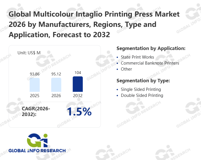 Global Info Research has recently published "Global Multicolour Intaglio Printing Press Market 2026 by Manufacturers, Regions, Type and Application, Forecast to 2032". This report systematically analyzes the global Multicolour Intaglio Printing Press market, providing multi-dimensional insights through type (Single Sided Printing、 Double Sided Printing), application (State Print Works、 Commercial Banknote Printers、 Other), regional markets, and major manufacturers (Koenig & Bauer、 KOMORI、 CBPM、 Goebel), assessing the market status, trend evolution, and competitive landscape impact from 2021 to 2032.