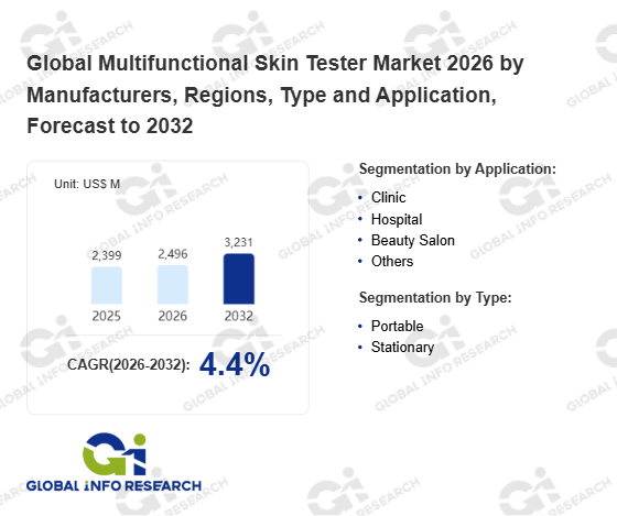 Global Info Research has recently published "Global Multifunctional Skin Tester Market 2026 by Manufacturers, Regions, Type and Application, Forecast to 2032". This report systematically analyzes the global Multifunctional Skin Tester market, providing multi-dimensional insights through type (Portable、 Stationary), application (Clinic、 Hospital、 Beauty Salon、 Others), regional markets, and major manufacturers (Callegari、 DJM Medical Instrument、 SkinLabs、 Cortex、 Michelson、 Canfield Scientific、 Courage Khazaka Electronic、 DermoScan、 Magnosco、 Bomtech Electronics、 CHOWIS Co.,Ltd.、 Coskin、 Dermalifeusa、 DermaQuip、 Gadelius、 Nera Solutions、 Opatra、 Zemits), assessing the market status, trend evolution, and competitive landscape impact from 2021 to 2032.