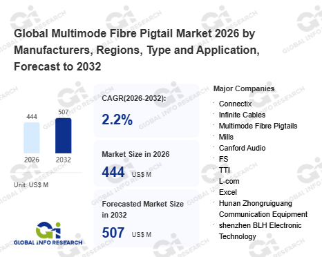 Global Info Research has recently published "Global Multimode Fibre Pigtail Market 2026 by Manufacturers, Regions, Type and Application, Forecast to 2032". This report systematically analyzes the global Multimode Fibre Pigtail market, providing multi-dimensional insights through type (LC Multimode Fibre Pigtails、 SC Multimode Fibre Pigtails、 ST Multimode Fibre Pigtails、 Others), application (Telecommunications、 Data Centers、 Medical Equipment、 Industrial Automation、 Others), regional markets, and major manufacturers (Connectix、 Infinite Cables、 Multimode Fibre Pigtails、 Mills、 Canford Audio、 FS、 TTI、 L-com、 Excel、 Hunan Zhongruiguang Communication Equipment、 shenzhen BLH Electronic Technology、 JunJin Technology), assessing the market status, trend evolution, and competitive landscape impact from 2021 to 2032.