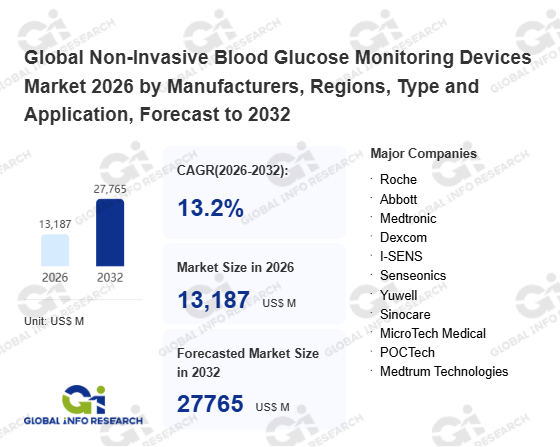 Global Info Research has recently published "Global Non-Invasive Blood Glucose Monitoring Devices Market 2026 by Manufacturers, Regions, Type and Application, Forecast to 2032". This report systematically analyzes the global Non-Invasive Blood Glucose Monitoring Devices market, providing multi-dimensional insights through type (Replaceable Type、 Long-term Retention Type), application (Hospital、 Home Use、 Others), regional markets, and major manufacturers (Roche、 Abbott、 Medtronic、 Dexcom、 I-SENS、 Senseonics、 Yuwell、 Sinocare、 MicroTech Medical、 POCTech、 Medtrum Technologies、 SIBIONICS), assessing the market status, trend evolution, and competitive landscape impact from 2021 to 2032.
