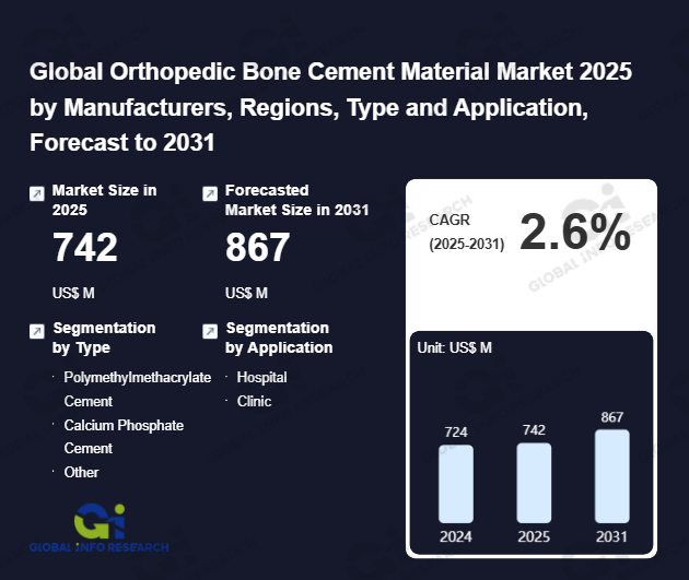 Global Info Research has recently published "Global Orthopedic Bone Cement Material Market 2026 by Manufacturers, Regions, Type and Application, Forecast to 2032". This report systematically analyzes the current status, future trends (2021-2032), and competitive landscape of the global Orthopedic Bone Cement Material market. It provides a quantitative analysis from the perspectives of type (PolymethyImethacrylate Cement、 Calcium Phosphate Cement、 Other), application (Hospital、 Clinic), regional markets, and major manufacturers (Heraeus Medical、 Johnson & Johnson、 Stryker、 Zimmer Biomet、 Medtronic、 Smith & Nephew、 Exactech), comprehensively assessing market opportunities and competitive dynamics.