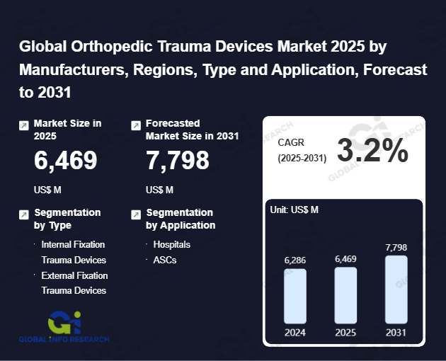 Global Info Research has recently published "Global Orthopedic Trauma Devices Market 2026 by Manufacturers, Regions, Type and Application, Forecast to 2032". This report systematically analyzes the global Orthopedic Trauma Devices market, providing multi-dimensional insights through type (Internal Fixation Trauma Devices、 External Fixation Trauma Devices), application (Hospitals、 ASCs), regional markets, and major manufacturers (DePuy Synthes、 Smith & Nephew、 Stryker、 Zimmer Biomet、 B. Braun Melsungen、 DJO Global、 OsteoMed、 Globus Medical、 BioPro、 CONMED、 Image Ortho Surgical、 Integra LifeSciences、 Medtronic、 Acumed、 Orthofix、 VILEX IN TENNESSEE、 Wright Medical、 Arthrex), assessing the market status, trend evolution, and competitive landscape impact from 2021 to 2032.