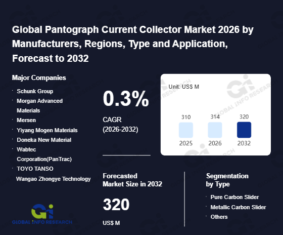 Global Info Research has recently published "Global Pantograph Current Collector Market 2026 by Manufacturers, Regions, Type and Application, Forecast to 2032". This report systematically analyzes the global Pantograph Current Collector market, providing multi-dimensional insights through type (Pure Carbon Slider、 Metallic Carbon Slider、 Others), application (Electric Locomotive、 EMU、 Subway/Light Rail), regional markets, and major manufacturers (Schunk Group、 Morgan Advanced Materials、 Mersen、 Yiyang Mogen Materials、 Doneka New Material、 Wabtec Corporation(PanTrac)、 TOYO TANSO、 Wangao Zhongye Technology、 Hongde Electrical Carbon Products、 Kimwan Carbon), assessing the market status, trend evolution, and competitive landscape impact from 2021 to 2032.
