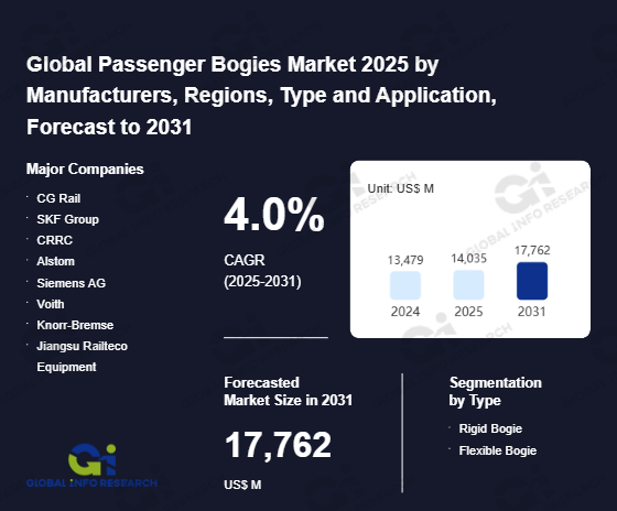 Global Info Research has recently published "Global Passenger Bogies Market 2026 by Manufacturers, Regions, Type and Application, Forecast to 2032". This report systematically analyzes the global Passenger Bogies market, providing multi-dimensional insights through type (Rigid Bogie、 Flexible Bogie), application (Urban Rail Transit、 Long-Distance Passenger Rail、 High-Speed Trains、 Light Rail、 Other), regional markets, and major manufacturers (CG Rail、 SKF Group、 CRRC、 Alstom、 Siemens AG、 Voith、 Knorr-Bremse、 Jiangsu Railteco Equipment、 Wabtec、 Škoda Transportation、 Rotem), assessing the market status, trend evolution, and competitive landscape impact from 2021 to 2032.