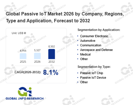 Global Info Research has recently published "Global Passive IoT Market 2026 by Manufacturers, Regions, Type and Application, Forecast to 2032". This report systematically analyzes the global Passive IoT market, providing multi-dimensional insights through type (Passive IoT Chip、 Passive IoT Device、 Other), application (Consumer Electronic、 Automotive、 Communication、 Aerospace and Defense、 Medical、 Other), regional markets, and major manufacturers (Honeywell、 GAO RFID Inc.、 Impinj、 NXP、 Fujitsu、 Murata、 Alien Technology、 EM Microelectronic、 Shanghai Quanray Electronics、 Invengo Information Technology、 Kiloway、 Fudan Microelectronics Group、 ZSM Electronics、 T-Head、 Johanson Technology、 Atmosic、 Wiliot), assessing the market status, trend evolution, and competitive landscape impact from 2021 to 2032.