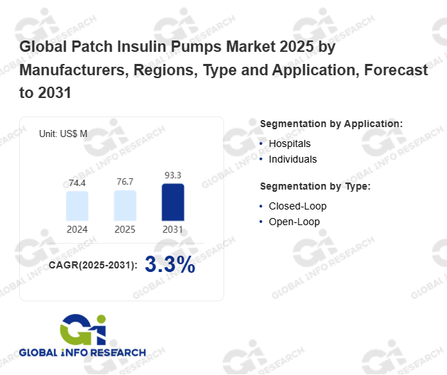Global Info Research has recently published "Global Patch Insulin Pumps Market 2026 by Manufacturers, Regions, Type and Application, Forecast to 2032". This report systematically analyzes the global Patch Insulin Pumps market, providing multi-dimensional insights through type (Closed-Loop、 Open-Loop), application (Hospitals、 Individuals), regional markets, and major manufacturers (Medtronic、 Insulet Corporation、 Roche、 Animas Corporation、 SOOIL Development、 Tandem Diabetes Care、 Debiotech、 Asante Solutions、 Shinmyung Mediyes、 Twobiens、 Top Corporation、 New Genix、 Phray、 Apex Medical、 Fornia), assessing the market status, trend evolution, and competitive landscape impact from 2021 to 2032.