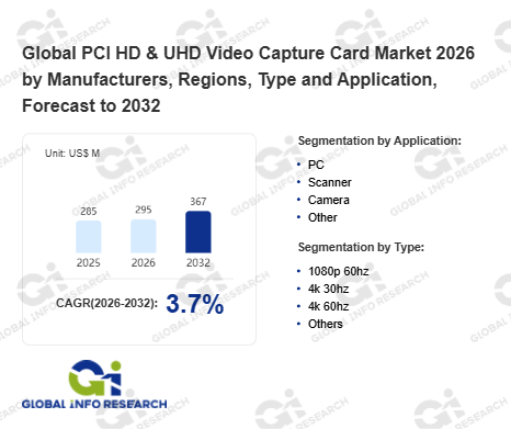Global Info Research has recently published "Global PCI HD & UHD Video Capture Card Market 2026 by Manufacturers, Regions, Type and Application, Forecast to 2032". This report systematically analyzes the global PCI HD & UHD Video Capture Card market, providing multi-dimensional insights through type (1080p 60hz、 4k 30hz、 4k 60hz、 Others), application (PC、 Scanner、 Camera、 Other), regional markets, and major manufacturers (Avermedia、 Epiphan、 Blackmagic、 Cognex、 Teledyne DALSA、 Elgato、 Euresys、 Advantech、 Magewel、 Adlink), assessing the market status, trend evolution, and competitive landscape impact from 2021 to 2032.