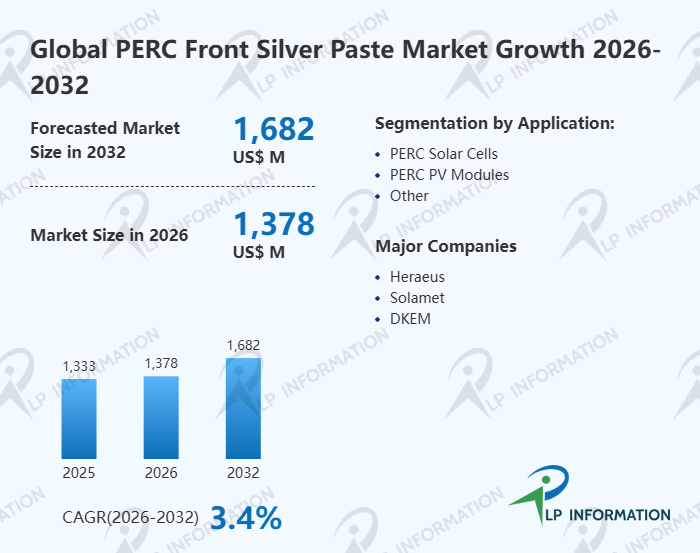 The global PERC Front Silver Paste market size is predicted to grow from US$ 1333 million in 2025 to US$ 1682 million in 2032; it is expected to grow at a CAGR of 3.4% from 2026 to 2032.