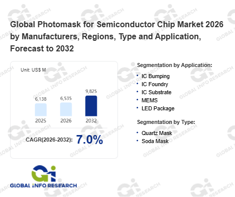 Global Info Research has recently published "Global Photomask for Semiconductor Chip Market 2026 by Manufacturers, Regions, Type and Application, Forecast to 2032". This report systematically analyzes the global Photomask for Semiconductor Chip market, providing multi-dimensional insights through type (Quartz Mask、 Soda Mask), application (IC Bumping、 IC Foundry、 IC Substrate、 MEMS、 LED Package), regional markets, and major manufacturers (TOPPAN PHOTOMASK、 Photronics、 DNP、 Shenzhen Qingyi Photomask Limited、 HOYA Corporation、 LG Innotek、 NIPPON FILCON、 Shenzhen Newway Photomask Making、 NEPCO), assessing the market status, trend evolution, and competitive landscape impact from 2021 to 2032.