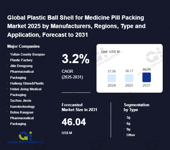 Global Info Research has recently published "Global Plastic Ball Shell for Medicine Pill Packing Market 2026 by Manufacturers, Regions, Type and Application, Forecast to 2032". This report systematically analyzes the global Plastic Ball Shell for Medicine Pill Packing market, providing multi-dimensional insights through type (3g、 6g、 9g、 Other), application (Traditional Chinese Medicine (TCM) Pills Packaging、 Health Supplements and Nutraceuticals、 Other), regional markets, and major manufacturers (Yutian County Banqiao Plastic Factory、 Jilin Dongyang Pharmaceutical Packaging、 Huiteng Glass&Plastic、 Hebei Jixing Medical Packaging、 Suzhou Jinxin Nanotechnology、 Botou Kangyue Pharmaceutical Packaging), assessing the market status, trend evolution, and competitive landscape impact from 2021 to 2032.