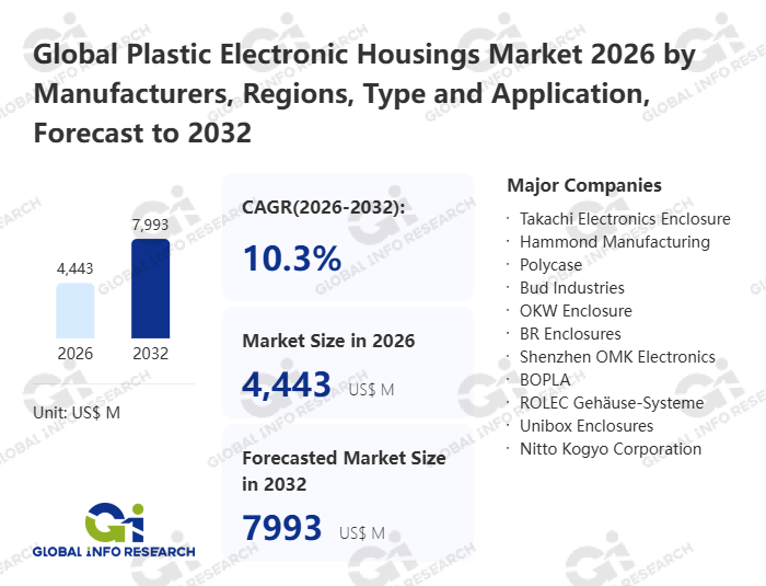 Global Info Research has recently published "Global Plastic Electronic Housings Market 2026 by Manufacturers, Regions, Type and Application, Forecast to 2032". This report systematically analyzes the global Plastic Electronic Housings market, providing multi-dimensional insights through type (Connectors、 Sensors、 Relays、 Fuse Holders、 Others), application (Consumer Electronics、 Medical Instruments、 Vehicle Electronics、 Others), regional markets, and major manufacturers (Takachi Electronics Enclosure、 Hammond Manufacturing、 Polycase、 Bud Industries、 OKW Enclosure、 BR Enclosures、 Shenzhen OMK Electronics、 BOPLA、 ROLEC Gehäuse-Systeme、 Unibox Enclosures、 Nitto Kogyo Corporation、 Toolless、 Alltec Integrated Manufacturing、 Supertronic、 CDT、 Altınkaya Enclosures for Electronics、 Equipto Electronics、 Kradex), assessing the market status, trend evolution, and competitive landscape impact from 2021 to 2032.