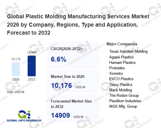 Global Info Research has recently published "Global Plastic Molding Manufacturing Services Market 2026 by Manufacturers, Regions, Type and Application, Forecast to 2032". This report systematically analyzes the global Plastic Molding Manufacturing Services market, providing multi-dimensional insights through type (Injection Molding Services、 Extrusion Molding Services、 Blow Molding Services、 Thermoforming Services、 Others), application (Automotive Parts、 Electronics and Appliances、 Medical Supplies、 Packaging Containers、 Daily Necessities and Consumer Goods、 Building Materials、 Others), regional markets, and major manufacturers (Texas Injection Molding、 Agapé Plastics、 Hansen Plastics、 Protolabs、 Xometry、 EVCO Plastics、 Tessy Plastics、 Mack Molding、 The Rodon Group、 Plastikon Industries、 MGS Mfg. Group、 Ironwood Plastics、 Plastek Industries、 Jabil Inc、 Wanjiada), assessing the market status, trend evolution, and competitive landscape impact from 2021 to 2032.