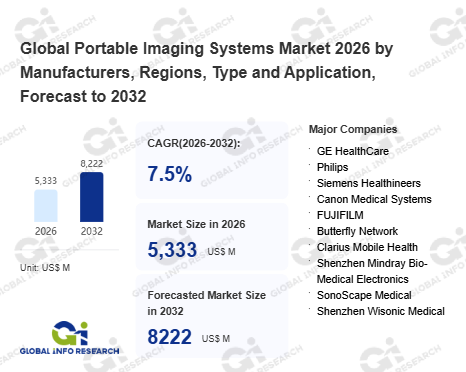 Global Info Research has recently published "Global Portable Imaging Systems Market 2026 by Manufacturers, Regions, Type and Application, Forecast to 2032". This report systematically analyzes the global Portable Imaging Systems market, providing multi-dimensional insights through type (X-Ray、 Computed Tomography (CT) Scanners、 Ultrasound Systems、 Others), application (Hospitals、 Ambulatory Surgical Centers、 Speciality Clinics、 Diagnostics Centers、 Others), regional markets, and major manufacturers (GE HealthCare、 Philips、 Siemens Healthineers、 Canon Medical Systems、 FUJIFILM、 Butterfly Network、 Clarius Mobile Health、 Shenzhen Mindray Bio-Medical Electronics、 SonoScape Medical、 Shenzhen Wisonic Medical), assessing the market status, trend evolution, and competitive landscape impact from 2021 to 2032.