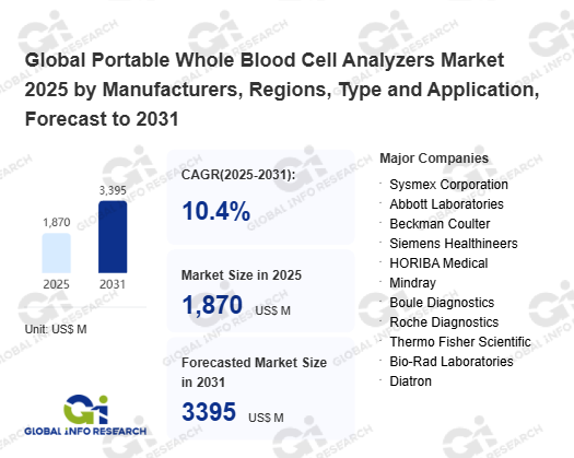 Global Info Research has recently published "Global Portable Whole Blood Cell Analyzers Market 2026 by Manufacturers, Regions, Type and Application, Forecast to 2032". This report systematically analyzes the global Portable Whole Blood Cell Analyzers market, providing multi-dimensional insights through type (3-part differential analyzers、 5-part differential analyzers、 Multi-classification analyzers), application (Hospital Emergency Departments、 Primary Healthcare Centers、 Military and Field Medical Use、 Veterinary Diagnostics、 Others), regional markets, and major manufacturers (Sysmex Corporation、 Abbott Laboratories、 Beckman Coulter、 Siemens Healthineers、 HORIBA Medical、 Mindray、 Boule Diagnostics、 Roche Diagnostics、 Thermo Fisher Scientific、 Bio-Rad Laboratories、 Diatron、 Orphee Medical、 Dymind Biotechnology、 Melet Schloesing Laboratoires、 Snibe Diagnostics、 Dirui Industrial、 Perlong Medical、 Rayto Life and Analytical Sciences、 EDAN Instruments、 Norma Diagnostika、 Spinreact、 Duke Scientific、 SFRI Medical Diagnostics、 Sight Diagnostics、 Drucker Diagnostics、 Idexx Laboratories、 Diatron MI、 Jinan Kinghawk Technology、 Woodley Equipment), assessing the market status, trend evolution, and competitive landscape impact from 2021 to 2032.