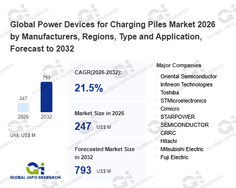 Global Info Research has recently published "Global Power Devices for Charging Piles Market 2026 by Manufacturers, Regions, Type and Application, Forecast to 2032". This report systematically analyzes the global Power Devices for Charging Piles market, providing multi-dimensional insights through type (DC Charging Pile、 AC Charging Pile), application (Public Charging Pile、 Private Charging Pile), regional markets, and major manufacturers (Oriental Semiconductor、 Infineon Technologies、 Toshiba、 STMicroelectronics、 Crmicro、 STARPOWER SEMICONDUCTOR、 CRRC、 Hitachi、 Mitsubishi Electric、 Fuji Electric), assessing the market status, trend evolution, and competitive landscape impact from 2021 to 2032.