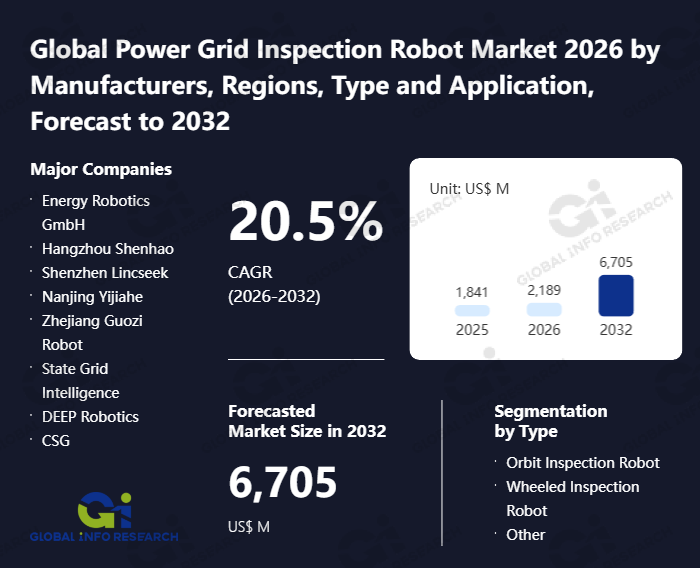 Global Info Research has recently published "Global Power Grid Inspection Robot Market 2026 by Manufacturers, Regions, Type and Application, Forecast to 2032". This report systematically analyzes the global Power Grid Inspection Robot market, providing multi-dimensional insights through type (Orbit Inspection Robot、 Wheeled Inspection Robot、 Other), application (Indoor、 Outdoor), regional markets, and major manufacturers (Energy Robotics GmbH、 Hangzhou Shenhao、 Shenzhen Lincseek、 Nanjing Yijiahe、 Zhejiang Guozi Robot、 State Grid Intelligence、 DEEP Robotics、 CSG、 Zhejiang Dali、 CHIEBOT、 Hangzhou Guochen Robot、 UnitreeRobotics), assessing the market status, trend evolution, and competitive landscape impact from 2021 to 2032.