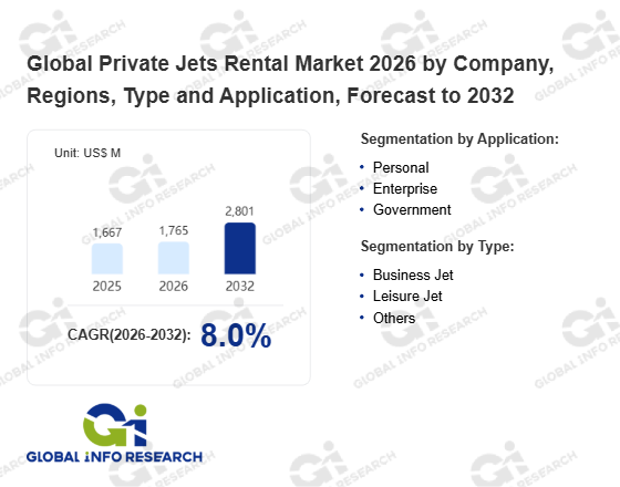 Global Info Research has recently published "Global Private Jets Rental Market 2026 by Manufacturers, Regions, Type and Application, Forecast to 2032". This report systematically analyzes the current status, future trends (2021-2032), and competitive landscape of the global Private Jets Rental market. It provides a quantitative analysis from the perspectives of type (Business Jet、 Leisure Jet、 Others), application (Personal、 Enterprise、 Government), regional markets, and major manufacturers (GlobeAir、 VistaJet、 LunaJets、 NetJets、 Wheels Up、 PrivateFly、 Air Charter Service、 Luxaviation、 Call a Jet、 Jet Aviation、 Europair、 ExecuJet、 Navair Jets、 Villiers Jets、 Flexjet、 Victor、 Fast Private Jets、 Magellan、 iJET Charter、 Jetflite、 Monarch Air Group、 Apollo Jets、 Prestige Jets、 Sunwest Aviation、 BHS Aviation、 Leviate Air Group、 Wheels Up、 Global Jet、 Eagle United、 GainJet、 Celebrity、 BitLux Travel、 Charterscanner、 InsiJets、 NovaJet、 Sentient Jet、 Verijet、 Vida Jets、 Sentient Jet), comprehensively assessing market opportunities and competitive dynamics.